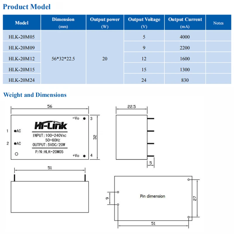 Openwrt moduleac dc 5v module HLK-20M05 220V to 5v20w Step down module