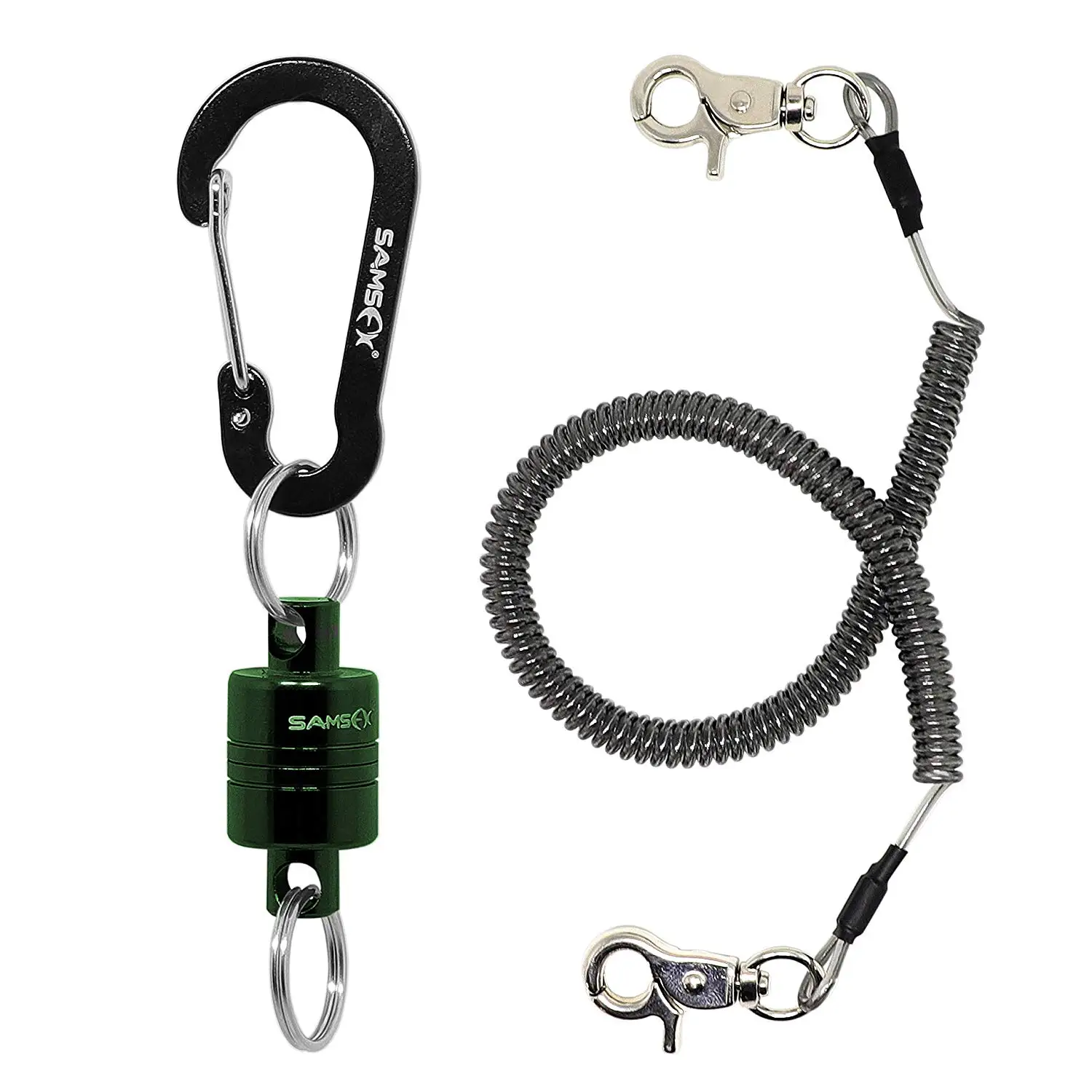 * 7.5 lbs maximum powerful magnetic pull force, can hold even the heaviest of fishing nets * Fishing coil lanyard was stainless steel wire in it and PVC coated outside, length from 18 inches extend to 70 inches * Hook snap, power clip and rolling barrel swivels attached, great to hold tools and belts on vest or backpack * Multi functional uses more than connect nets ,it can be attached with cutters, nippers and other tools, search small fishing accessories such as lost snap, hook.. * Keeps net safe and handy when you are fishing, holds the net handle down for easy reach and prevents snagging on brush