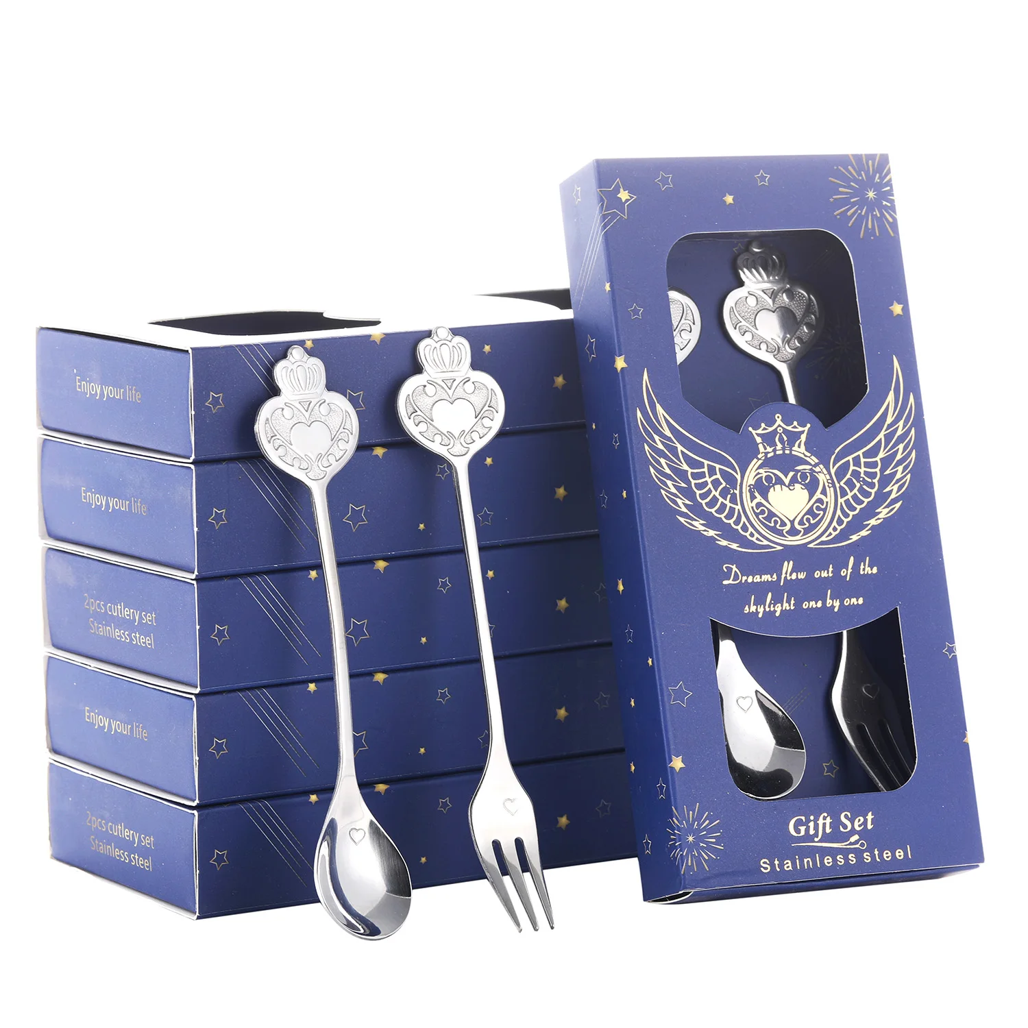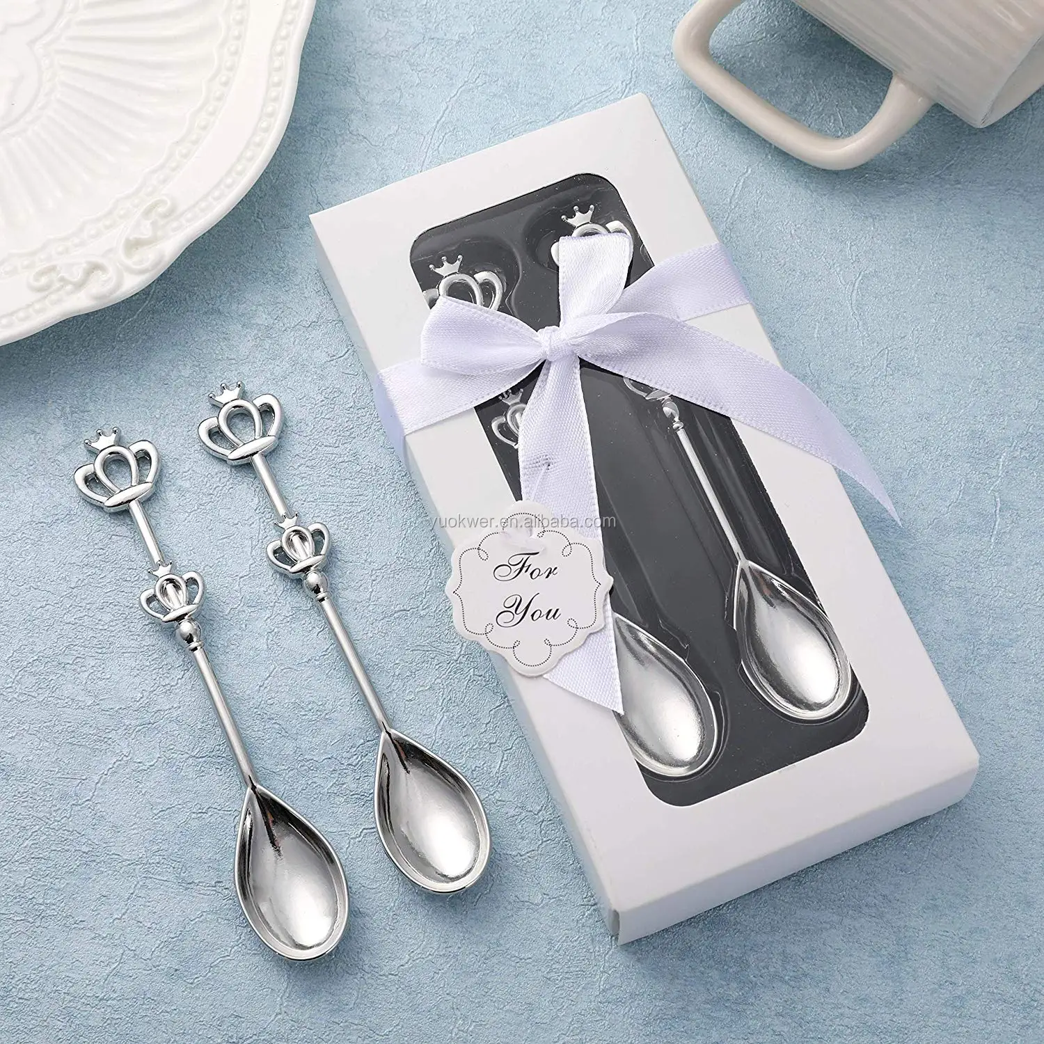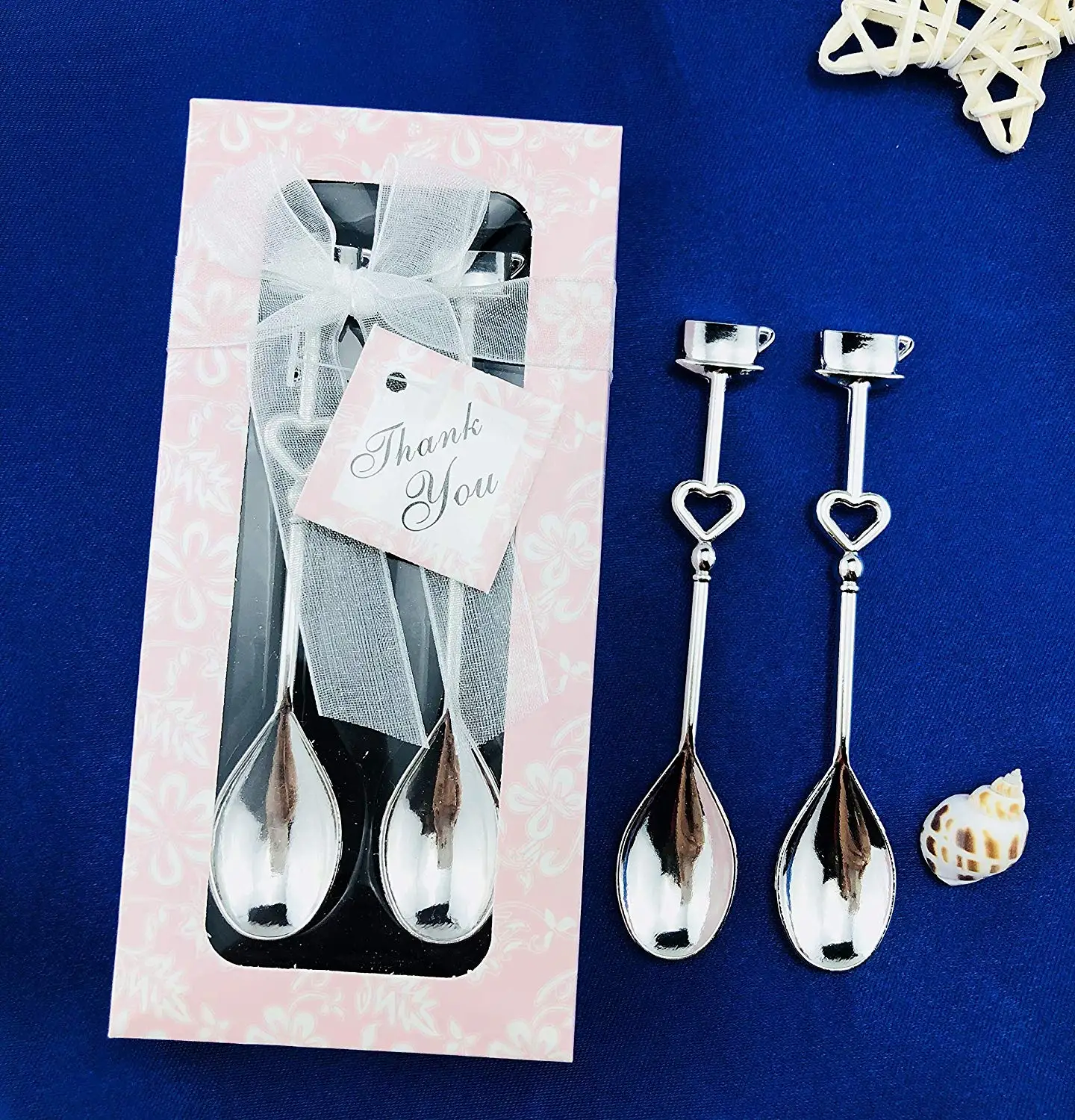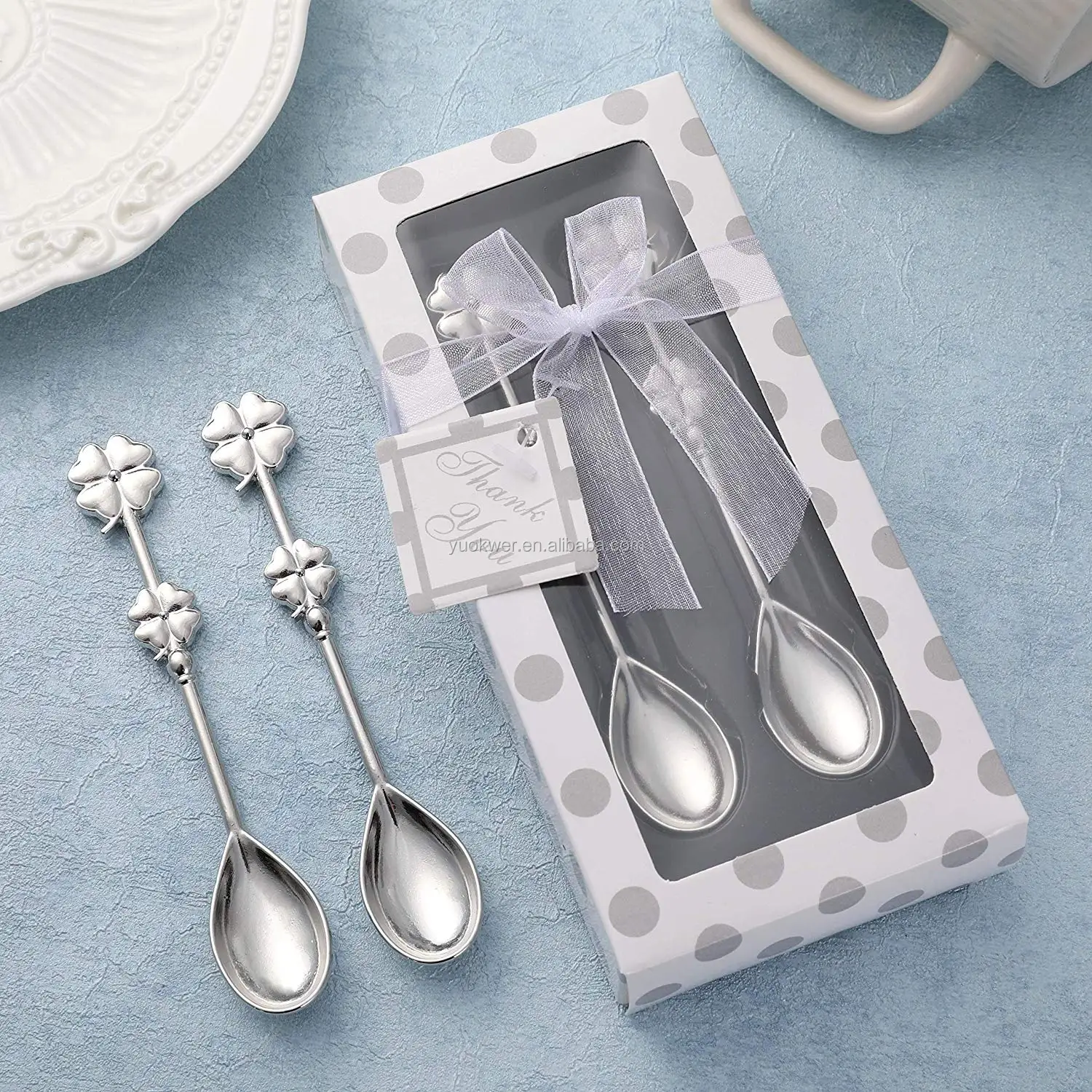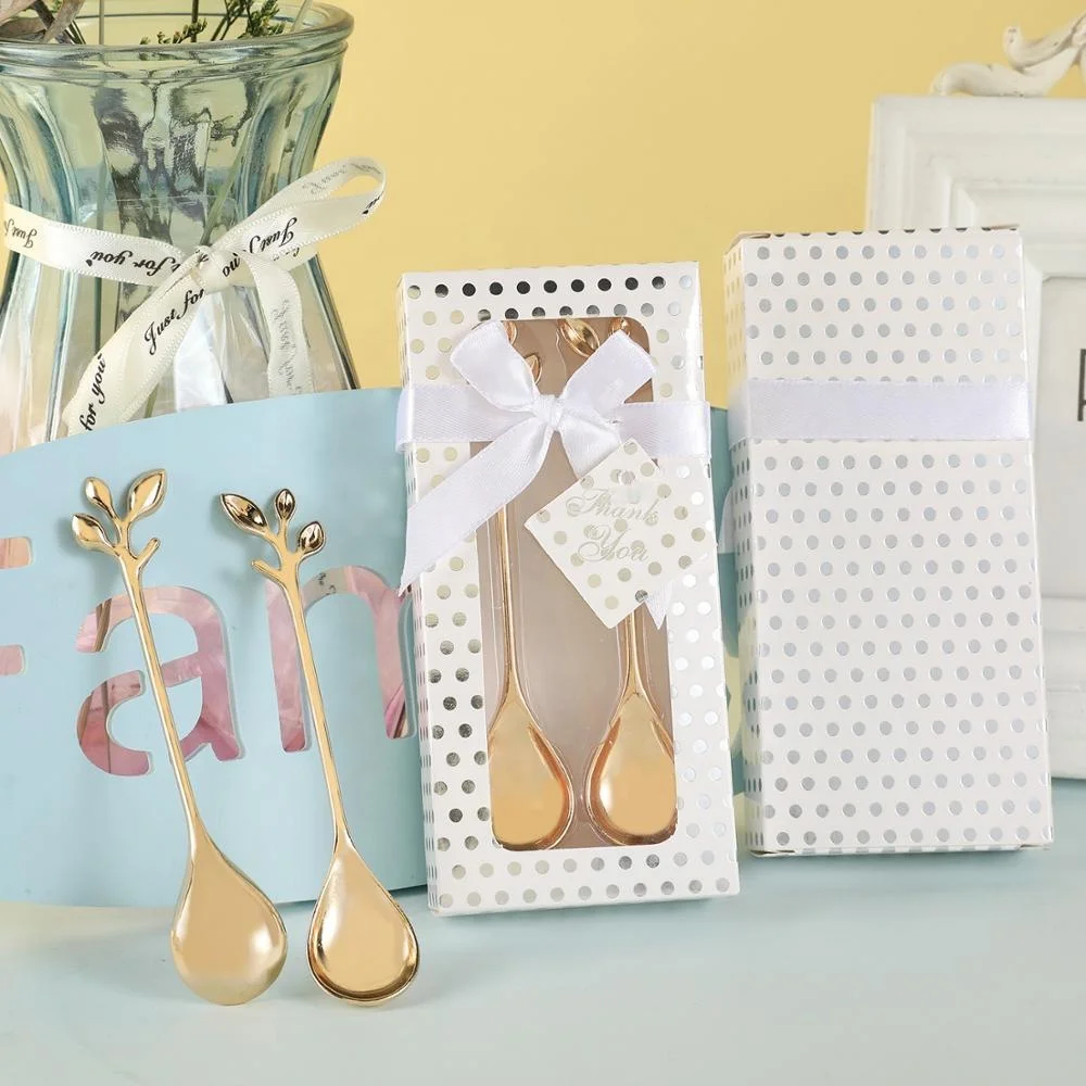 The delicate coffee spoons come with a white packaging case, a silk ribbon bowknot and a thanks card.Fine workmanship with beautiful shape and exquisite package.