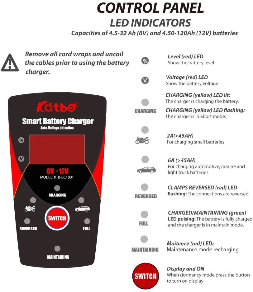 6V 12V @6000mA Lead Acid Battery Charger