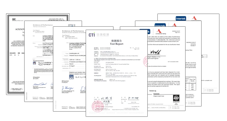 Low Temperature Sealing Technology | With LandGlass’ exclusive low temperature sealing technology, the surface stress of any position in LandVac tempered vacuum insulated glass exceeds 90MPa, perfectly retaining the safety features of tempered glass against impact. Teamed up with talents around the world, the core R&D group at LandGlass devoted eight years of hard work to this world-class challenge. Through tens of thousands of processing tests, by integrating the key technologies in vacuum insulted glass production and glass tempering solutions, they have successfully resolved the problem regarding tempered glass annealing in the sealing process and brought the vacuum glass technology to a new level. | ||||||