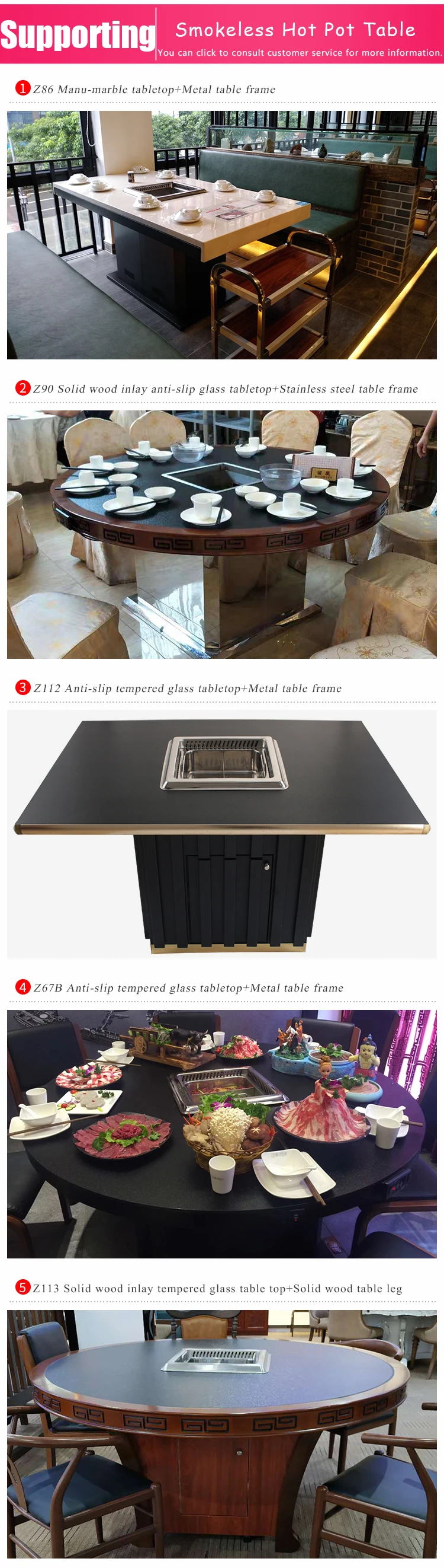 Restaurant Smokeless Hot Pot Table And BBQ Grill Marble Table With Grill
