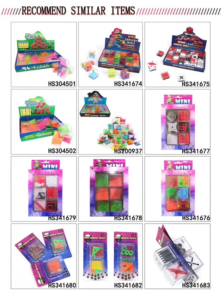 | HS341674 | Intelligent 24pcs designs plastic 3d magic maze cube puzzle with steel ball | display box | 15 | 14 | 24 | 37 | 27 | 56 | 0.06 |