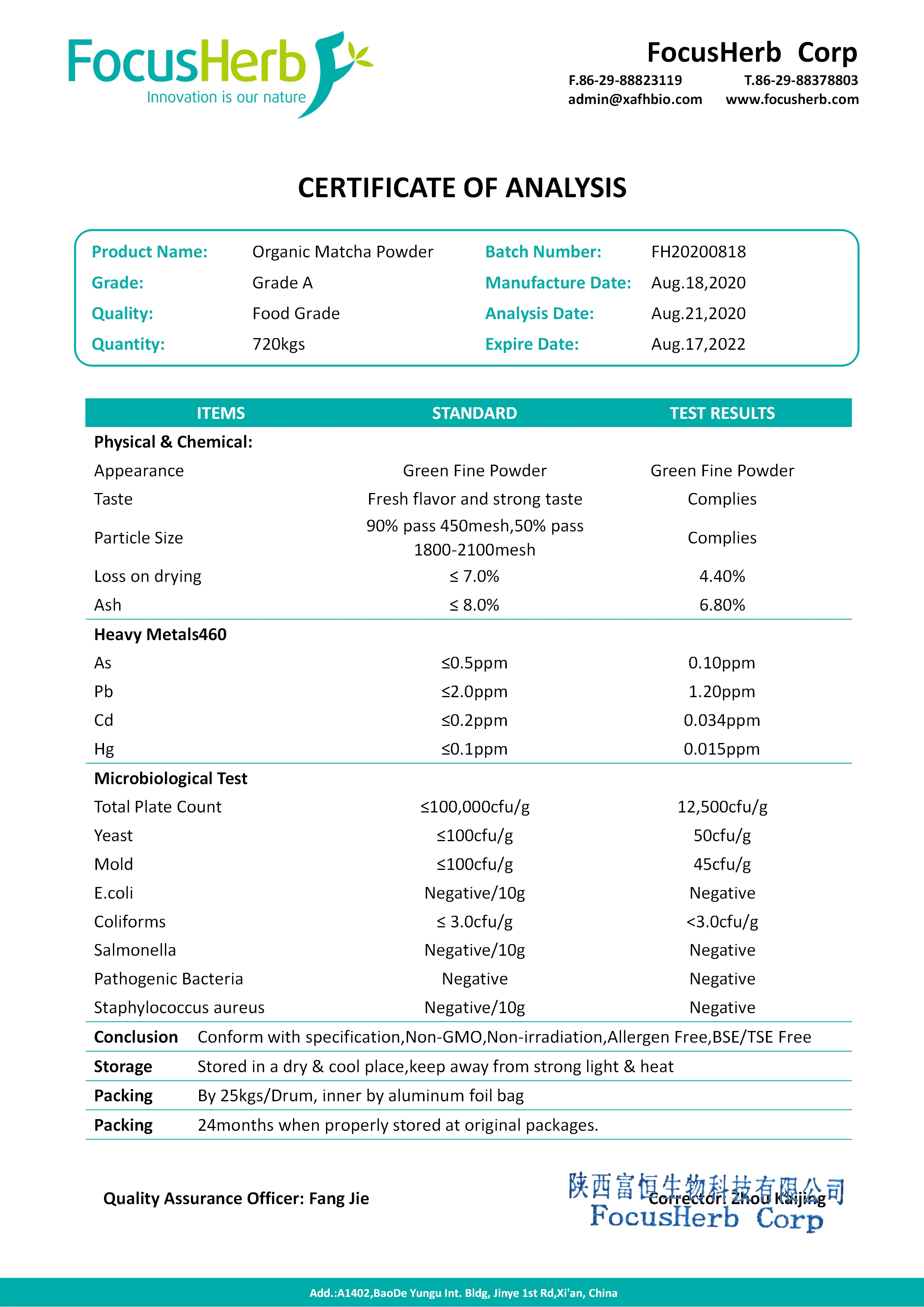 Product Name | Organic Matcha Powder |