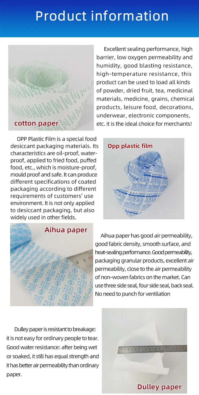 of powder, dried fruit, tea, herbs, medicines, grains, chemical products, snack foods, decorations, clothing, electronic