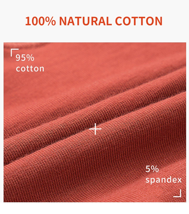 【PREMIUM FABRICS】: 95% cotton, 5% spandex. Crotch Area: lined with an extra 100% cotton fabric which is more comfortable and camouflages stains.