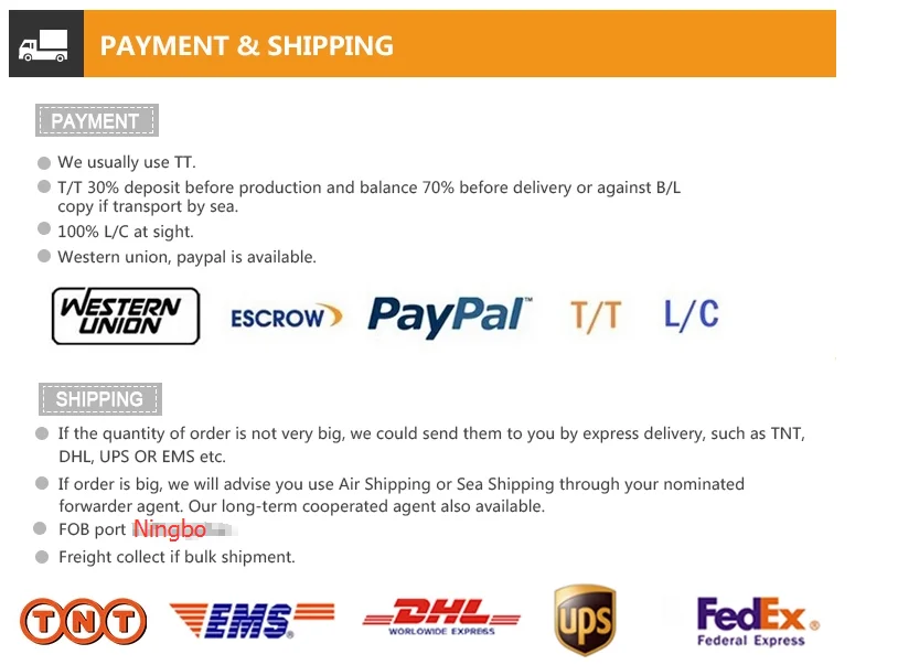 We accept EXW,FOB,CIF,etc. You can choose the one which is the most convenient or cost effective for you.