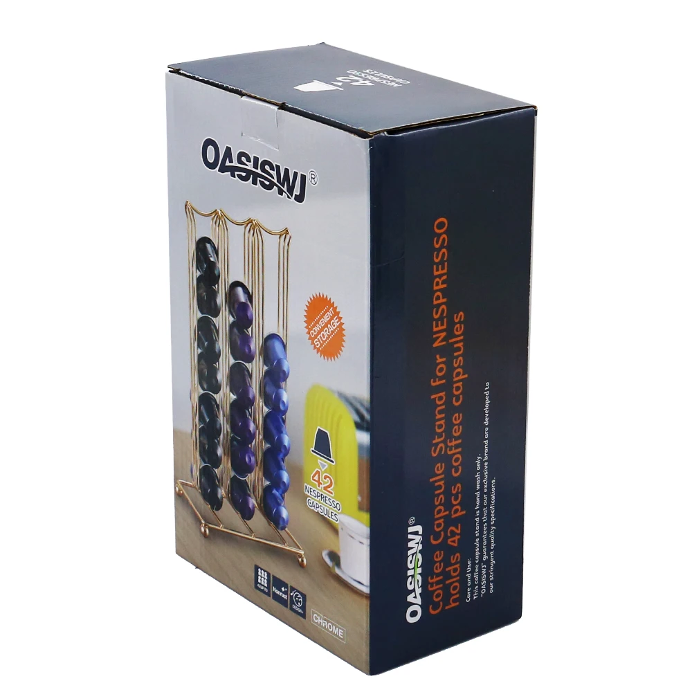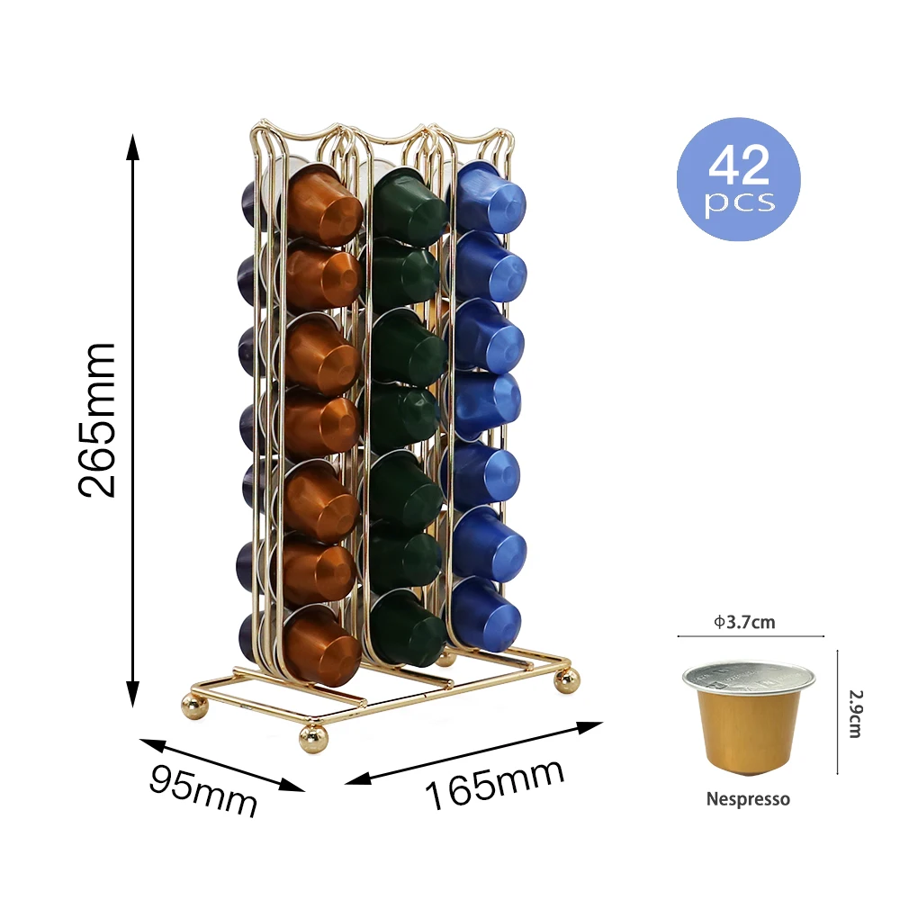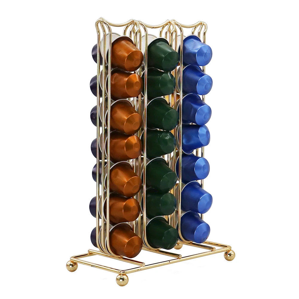 Product Name | Gold Metal Coffee Pod Rack Coffee Capsules Storage Holder Organizer with 42 Capsules | ||||