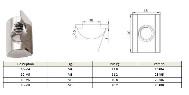 45 Series Roll-in T-Slot Nut With Spring Leaf Self-Aligning T Nuts
