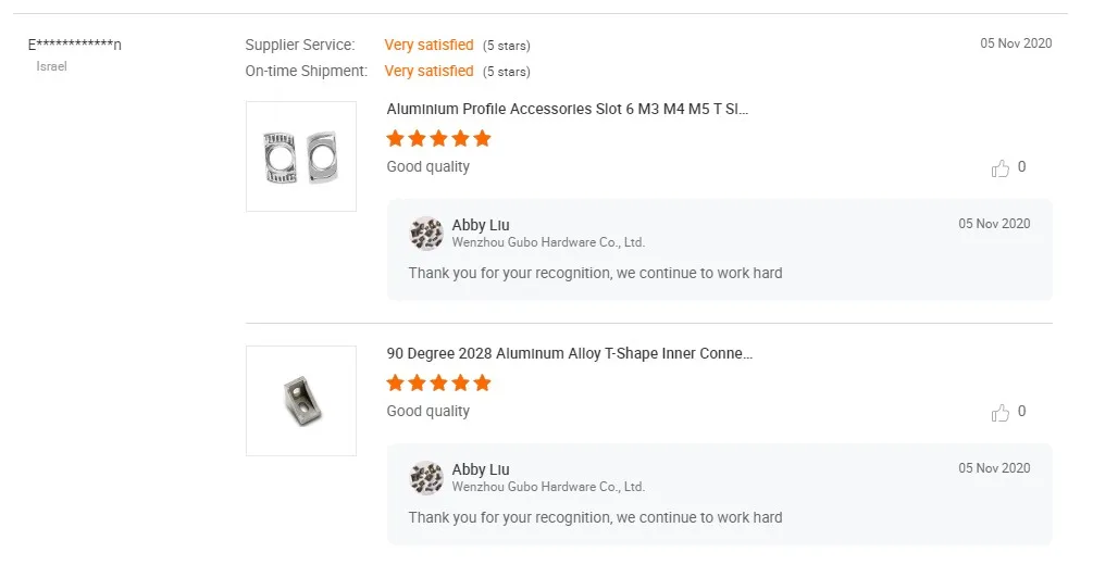 Wenzhou Gubo Hardware Co., Ltd.is engaged in the production and trade of of aluminum profiles and hardware accessories. Mainly engaged in the export business of various aluminum profiles and other hardware products. The main products are: T-slot nut, bolts, connectors, leveling casters, plastic parts, aluminum alloy brackets, zinc alloy parts, standard fasteners, hinges, door fittings, stainless steel series, etc. The products are exported to Southeast Asia, Europe and other countries and regions, and are trusted by domestic and foreign customers with good reputation and low price. The company pursues the management idea of faster speed, better quality and better service. We sincerely look forward to cooperating with our customersWe sincerely hope that you and I will work together for a better future!