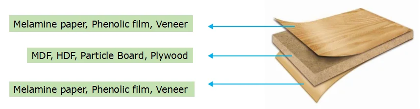 Surface material: Melamine paper, Phenolic film, Veneer