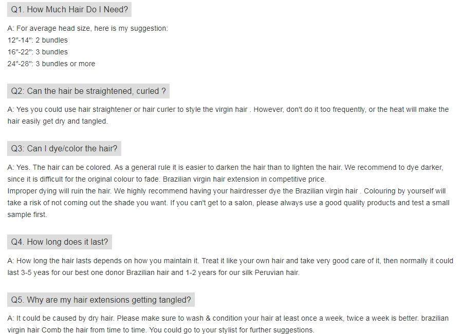 Funmi hair products specification: