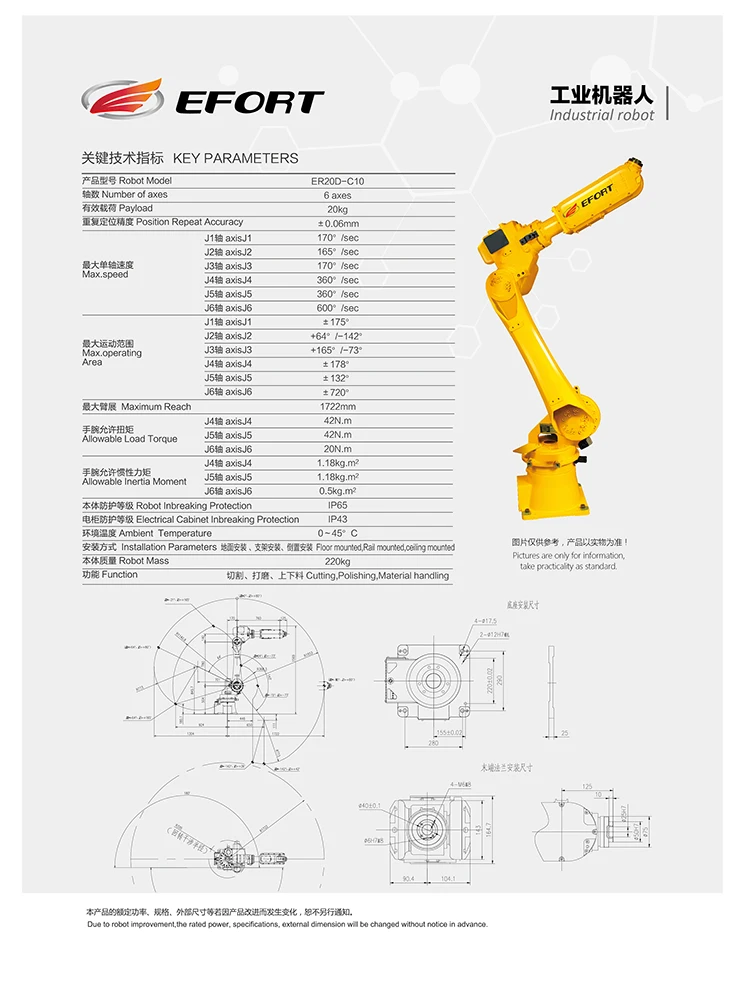 EFORT Intelligent Equipment Co., Ltd. is one of the top industrial robot manufacturers in China, providing customers with a full range of industrial robot products and cross-industry intelligent manufacturing solutions.