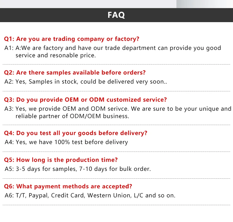 Our Superiority We are direct manufacturer with more than 20 years experience. High quality, prompt delivery and competitive price. Customers first! Delivery on time! We possess the profesional R&D department. Your customized design is always available. Gold supplier on alibaba. ---------------------------------------------------------------------------------------------------------------------------------------- If you need further information about our products, please do not hesitate to contact with us! |