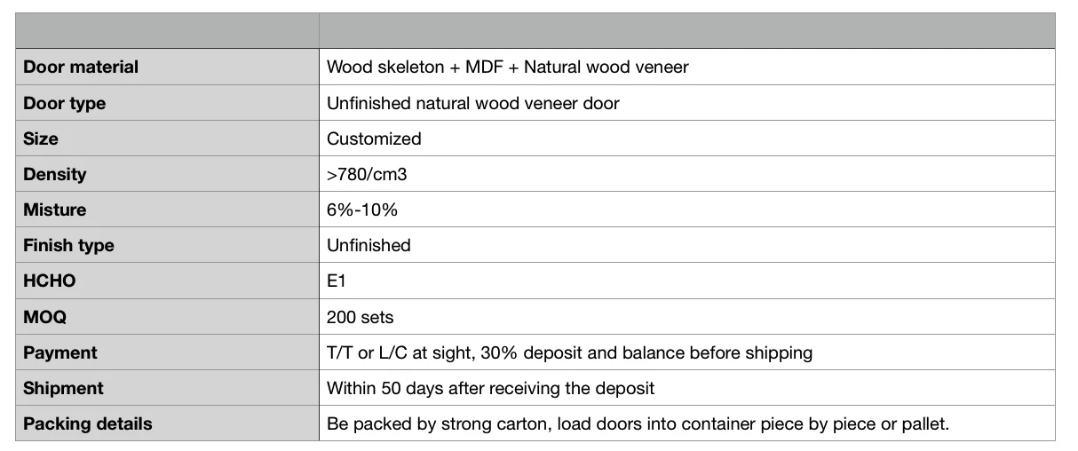 The features of unfinished wood veneer door ?