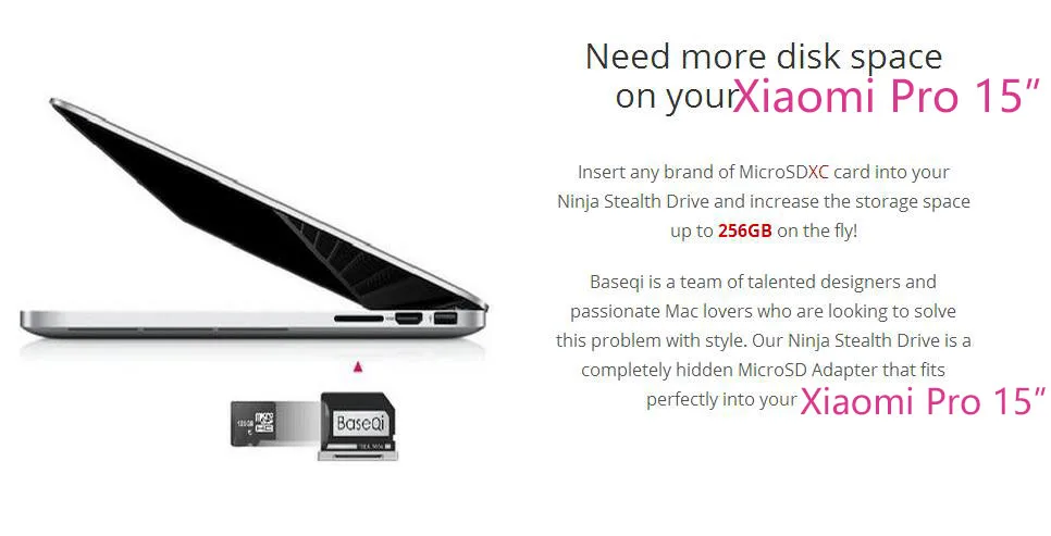 ★Completely hidden and fits snugly into Xiaomi Pro SD card slot.
