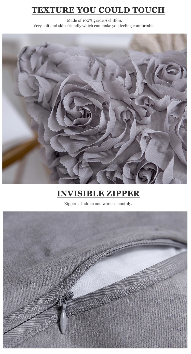 40*40 см ко Дню Святого Валентина чехлы на диванные подушки, романтический стерео шифон 3D розы Подушка серый чехол для подушки для домашнего декора