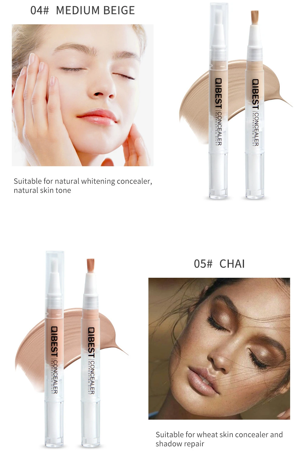 Package: 1 piece. This new fashion moisturizing concealer is easy to covering the defect and it is smooth and non-slip. We think it is the Best choice for concealer * Light weight mousse, light and translucent, creating a thin summer autumn makeup * Long- lasting, no sticky powder, super strong makeup * Natural color, makeup looks so natural and beautiful * Size 01:Pearl, wihcih is suitalbe for fair complexion or high-lightening * Size 02: Beige, which is suitable for natural dark skin concealer * Size 03: Natural, which is suitable for natural skin concealer * Size 04: media beige, which is suitable for natural whitening concealer, natural skin tone * Size 05: CHAI, which is suitable for wheat skin concealer and shadow repair * For: face makeup, face beauty, face conceler * BEST CHOICE for concealer