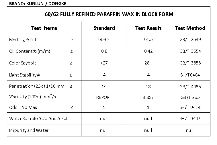 60/62 | Fushun Kunlun Fully Refined Paraffin wax |