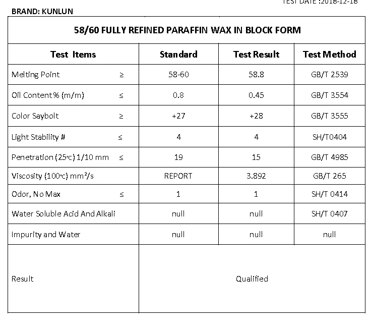 58/60 | Fushun Kunlun Fully Refined Paraffin wax |