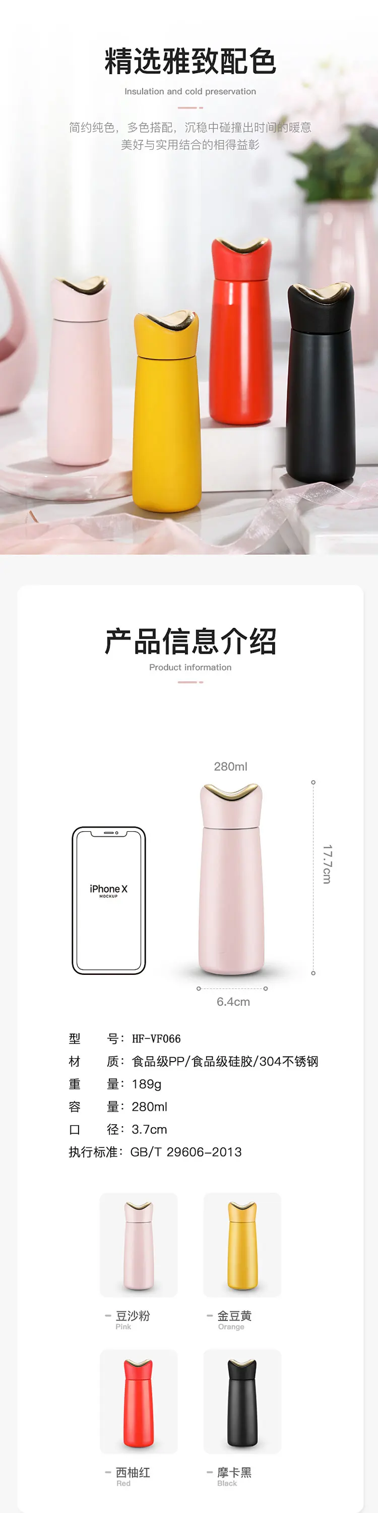 Product Name | 280ml cute Stainless Steel Vacuum flask for girls | ||||