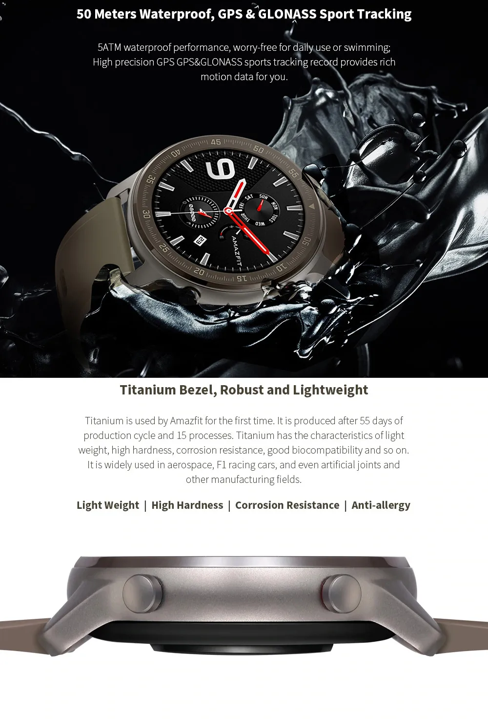 Water Resistant up to 5 ATM and High-precision GPS.