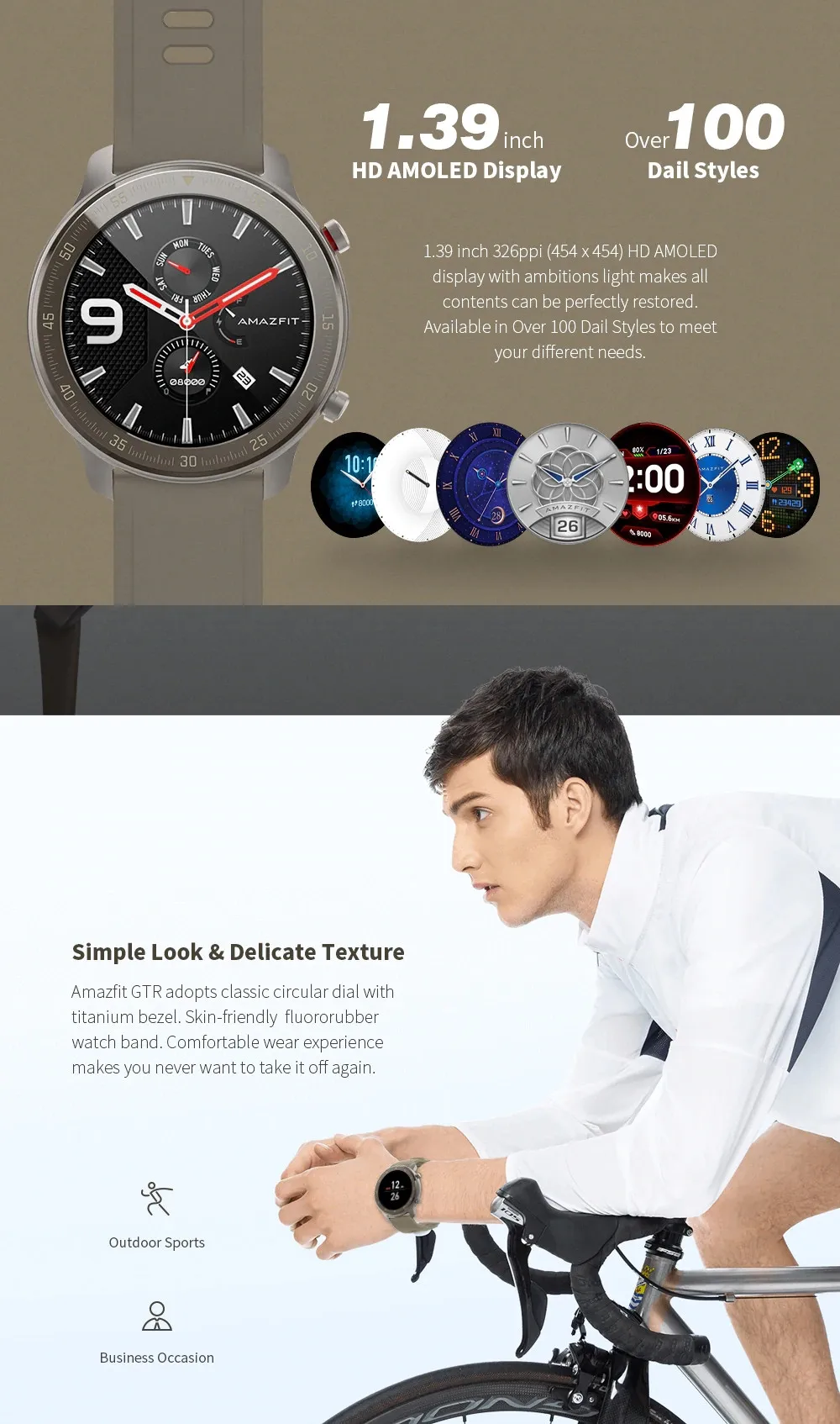 Large Retina-grade AMOLED Display with Elegant Watch Faces