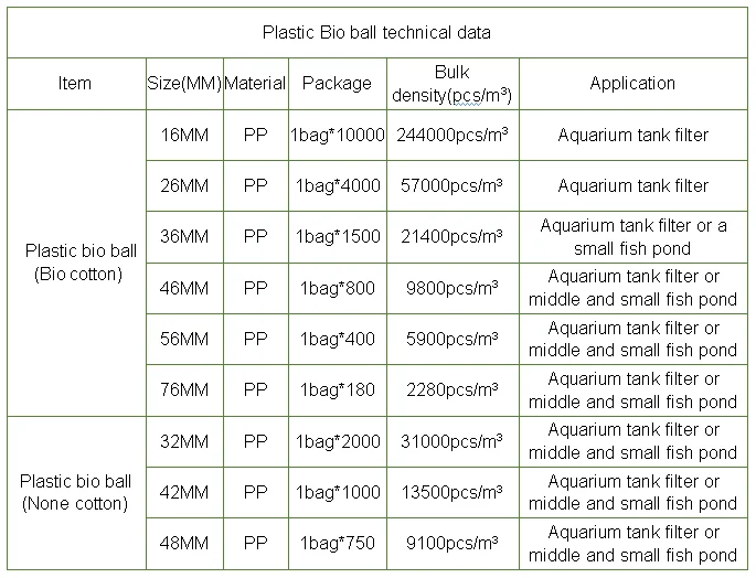 Bio balls provide large living area for beneficial bacterial to thrive , placed in a filter pond or tank, they efficiently reduce ammonia and nitrite to help maintain healthy aquarium tank, pond or fish farm water conditions and overall well -being of pond or fish farm fish and plants.