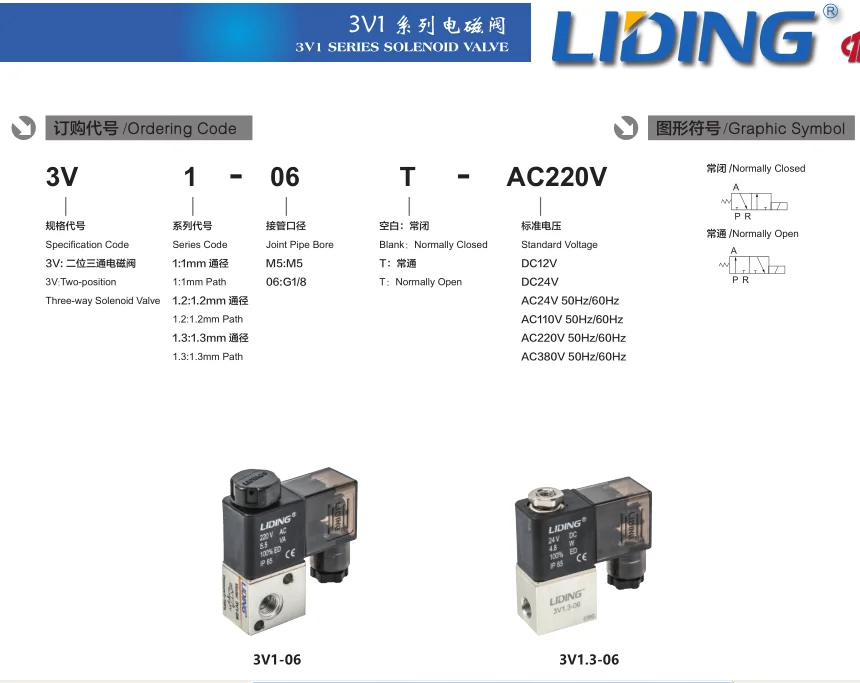 3V1 Series 3 way 2 position Aluminum Alloy Operated Directional Direct Acting Solenoid Valve Pneumatic Control Valve 3V1-06 12V