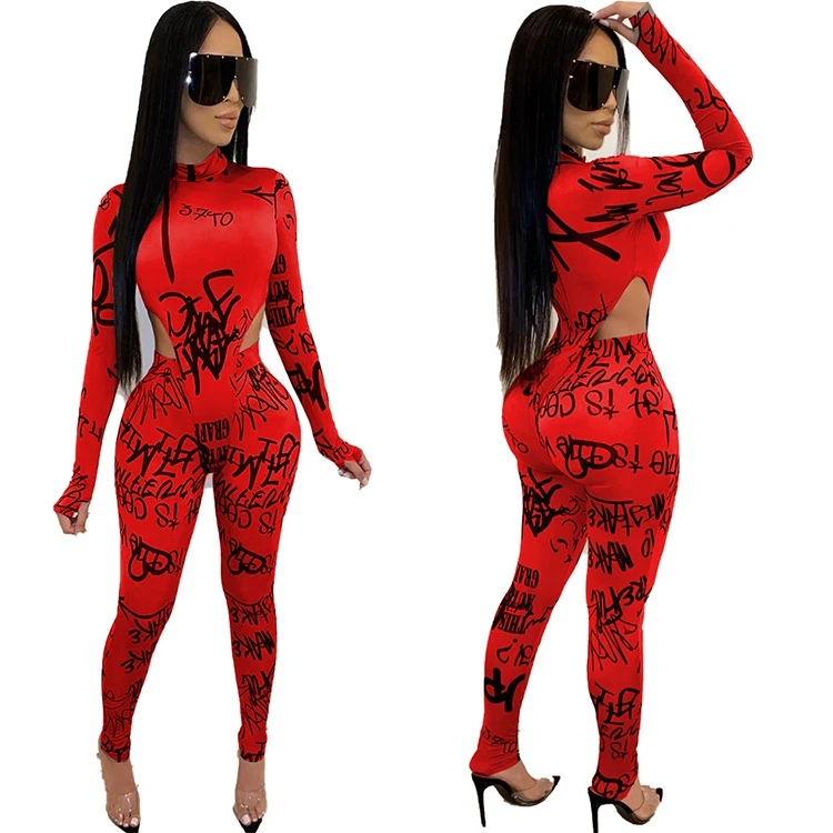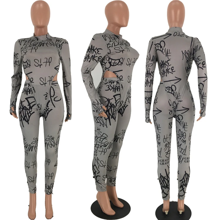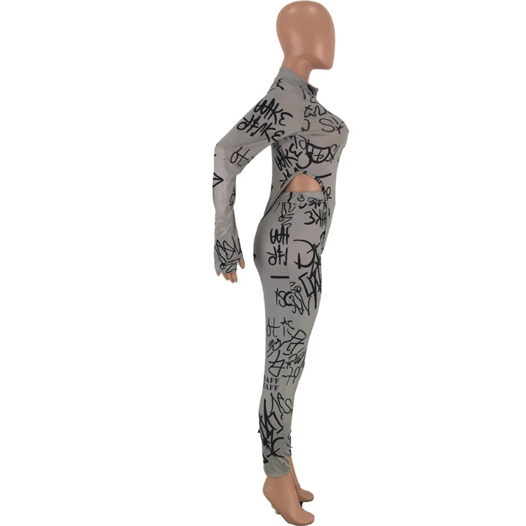 | Model number | 11AF285 high quality letter print long sleeve bocysuit bodycon club two piece outfits set women clothing |