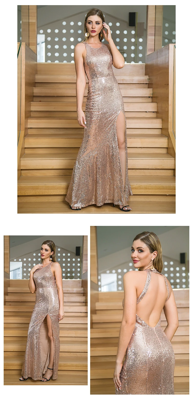 Name | Women Sexy Fashion Split Sleeveless Jewel Bare Bridesmaid Sequin Glitter Maxi Club Evening Dress | ||||||