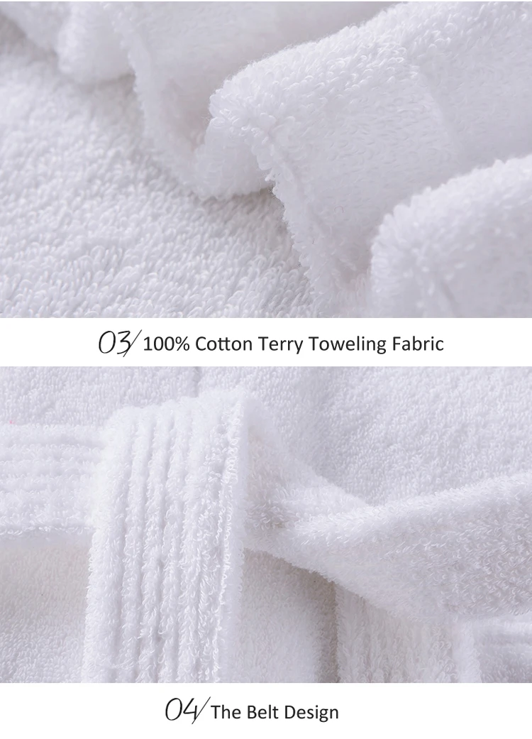 made of 100% combed cotton. These terry cloth bathrobes are absorbent, durable and soft.
