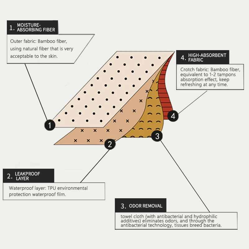 SUPER ABSORBENT. No leaks! Our reusable panties can absorb up to 2 regular tampons worth. Wear them as a replacement for your tampons, pads or cup, or as extra back up for your usual protection. Your flow, your choice! They are also great for light incontinence or postpartum recovery. SUPER COMFORTABLE. Our panties are breathable, comfortable and cute. They feel light and soft just like your regular underwear. And they are leakproof, so nothing to worry about. DESIGNED FOR WOMEN AND GIRLS. These perfect fit undies are made of Viscose and Bamboo fiber. Four layers technology is odor resistant. The full rear protection will keep you dry and fresh. Go through your menstrual cycle with complete peace of mind. SAFE. No chemicals. Our panty is the healthiest option for your body. Plus it is environmentally friendly! EASY CARE. Machine wash in cold water and no bleach, that’s all.