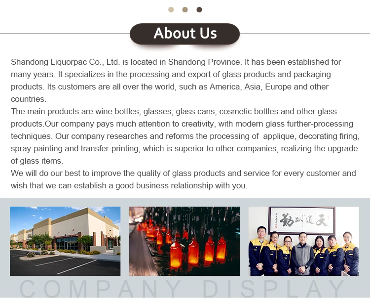 A1: Yes. We are specialized in making custom glass bottle. We have a very professional design team can help our client's design any kinds of glass bottle. Or please offer your own drawing. It will cost 15-20 working days to make a new mould and make a sample.