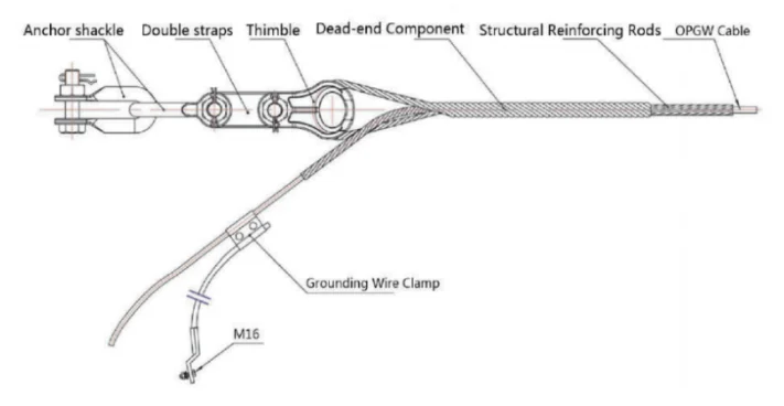 A complete set of OPGW Helical Guy Grip includes Aluminum Alloy or Aluminum or Aluminum-Clad steel Dead-end,Structural Reinforcing Rods,Supporting fittings and Grounding wire Clamps etc.