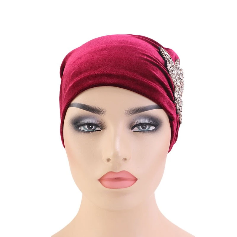 Products Name | High quality velvet Muslim women's headscarf hat beautiful diamond flower accessories hijab scarf |