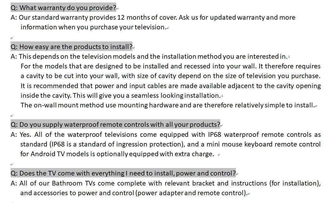 TV Specifications | ||||||