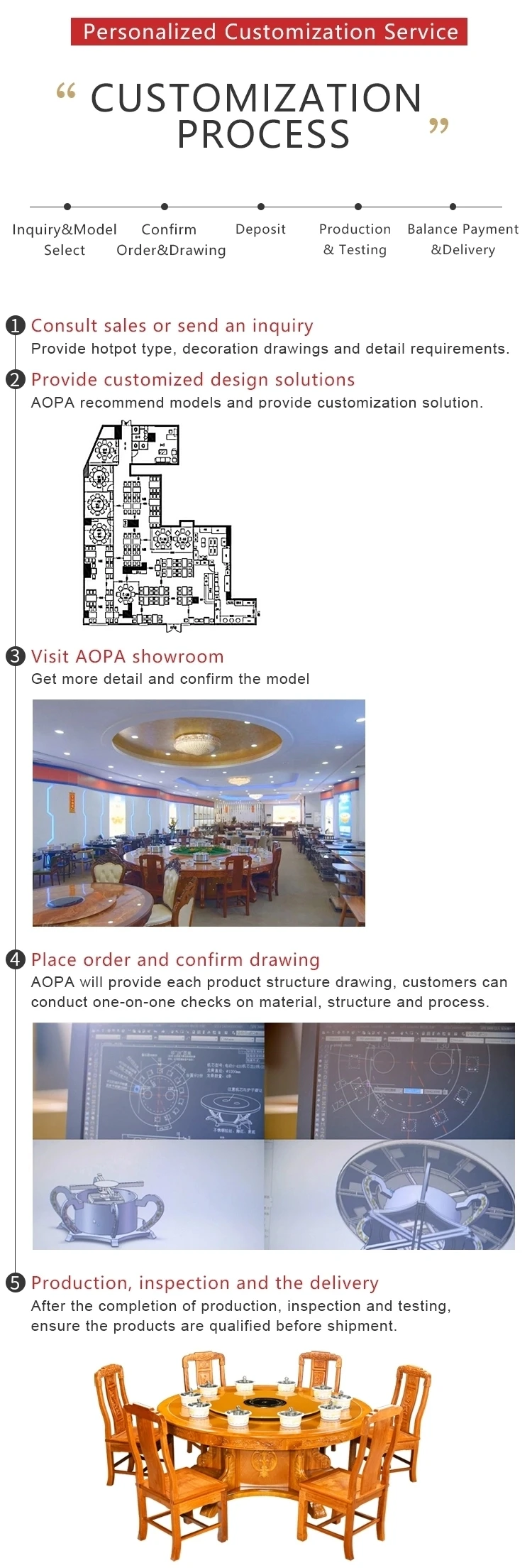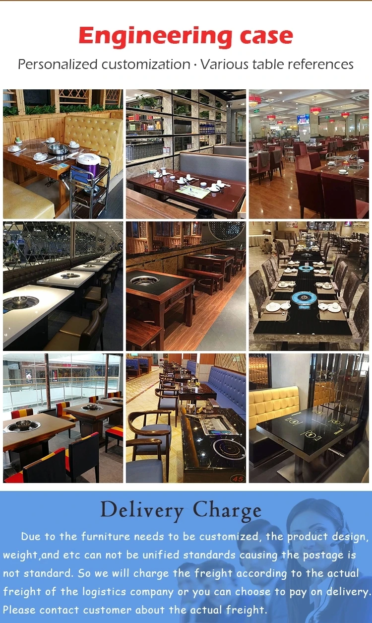Note: Products can be designed and manufactured according to user requirements. Including product size, shape, color and so on. Hot pot table /BBQ grill table can be customized, we can according to every customers' request and meet your requirements. Please feel free to tell us the specication you need, like size, material, color, quantity etc. | ||||||||
