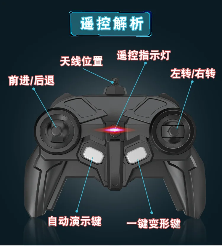Product Name: Remote Control Deformation Car 1:18 Packing quantity: 36PCS Carton size: 80 * 27 * 74CM Gross weight / net weight: 25 / 23kg Product size: person: 17*15.5*19.5 car: 23*10*6 Remarks: one-button deformation with light