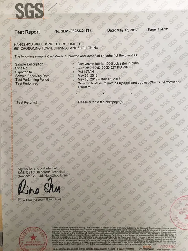 Certificate | AZO free, SGS test approved(REACH) | ||||||||