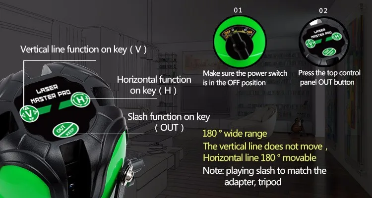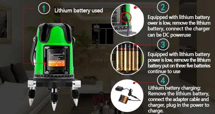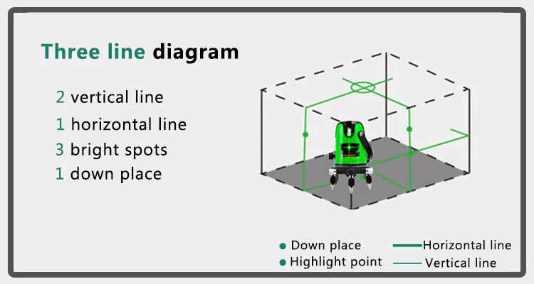 3 Line Green Beam Self-Leveling Horizontal Laser Line Level with 360 Degree Rotary | ||