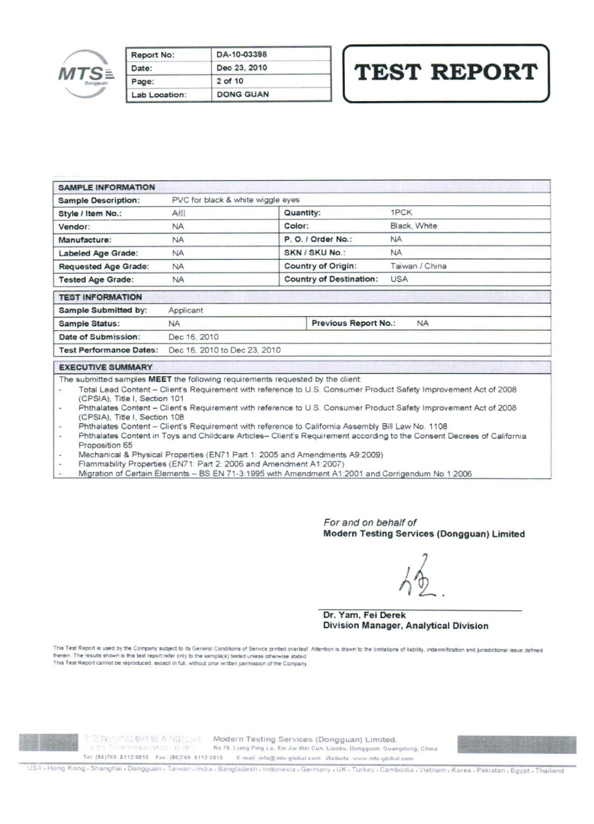 SGS Certificate