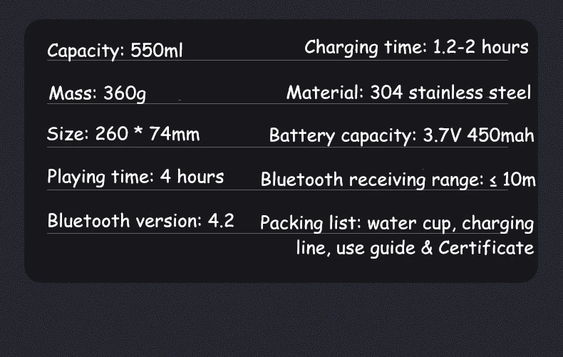 Product name | intelligent music vacuum cup |