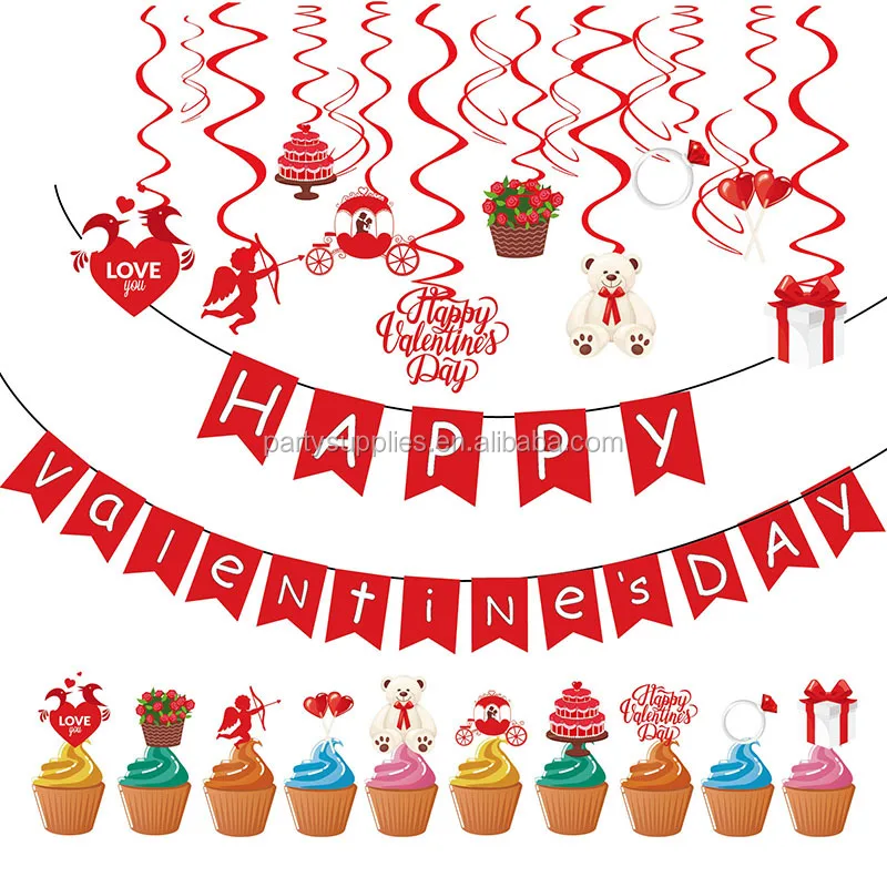 (1)20pcs Valentine's Day Spiral: 10 cards + 10 single spirals + 10 double heels. Warm tips: all the hooks are made, the cards need to be worn by yourselves, all pieces into a OPP bag with a white back card to prevent being damaged. 2)1 Pcs Paper Banner: card + rope + plastic needle, DIY is required. 3) Cupcake Topper: 10 cards + toothpick + dot glue. |