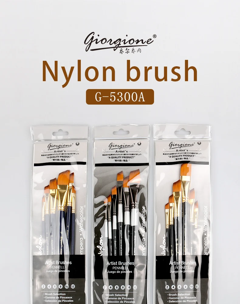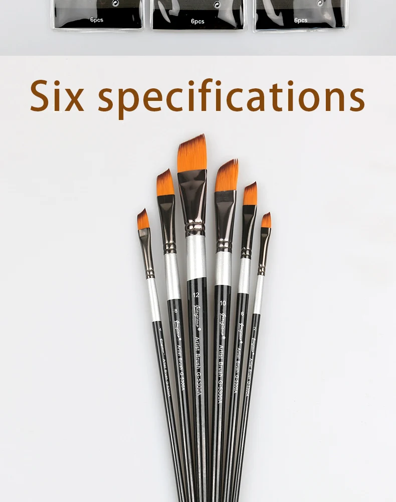 Giorgione 6 Pieces Angular Shape Nylon Hair Copper Ferrule Black Tip Wooden Handle Paintbrush set | ||||||