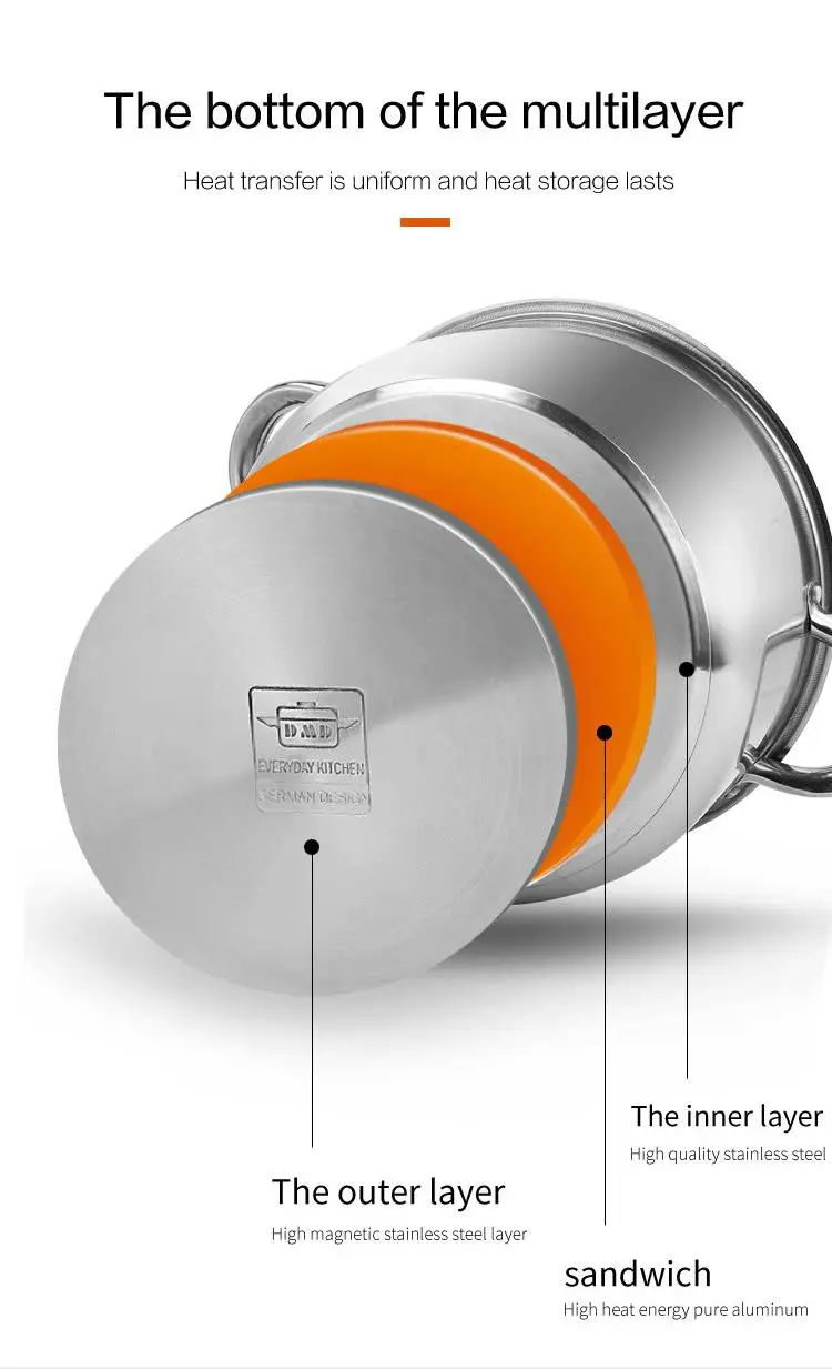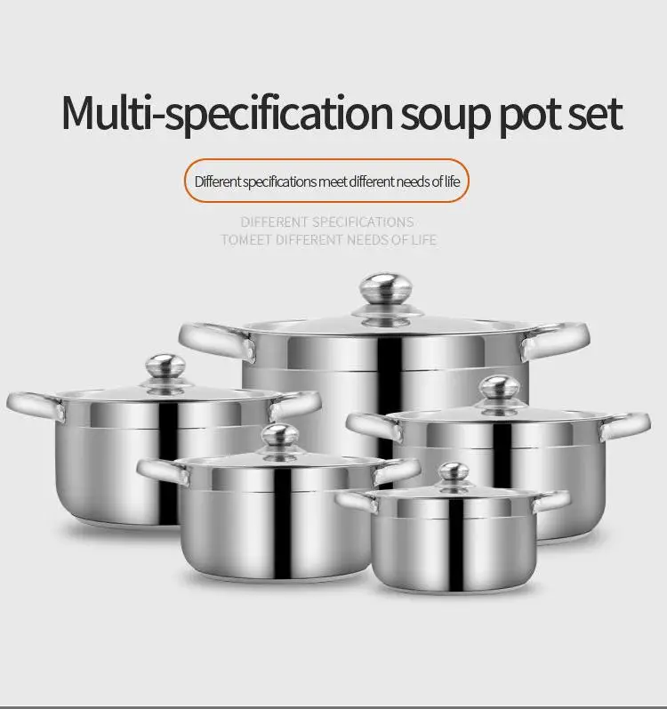 Product: | mult specification high quality 410 stainless steel soup pot cookware set | Handle & Knob: | Stainless steel |