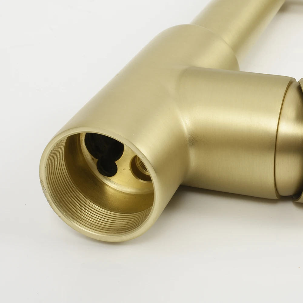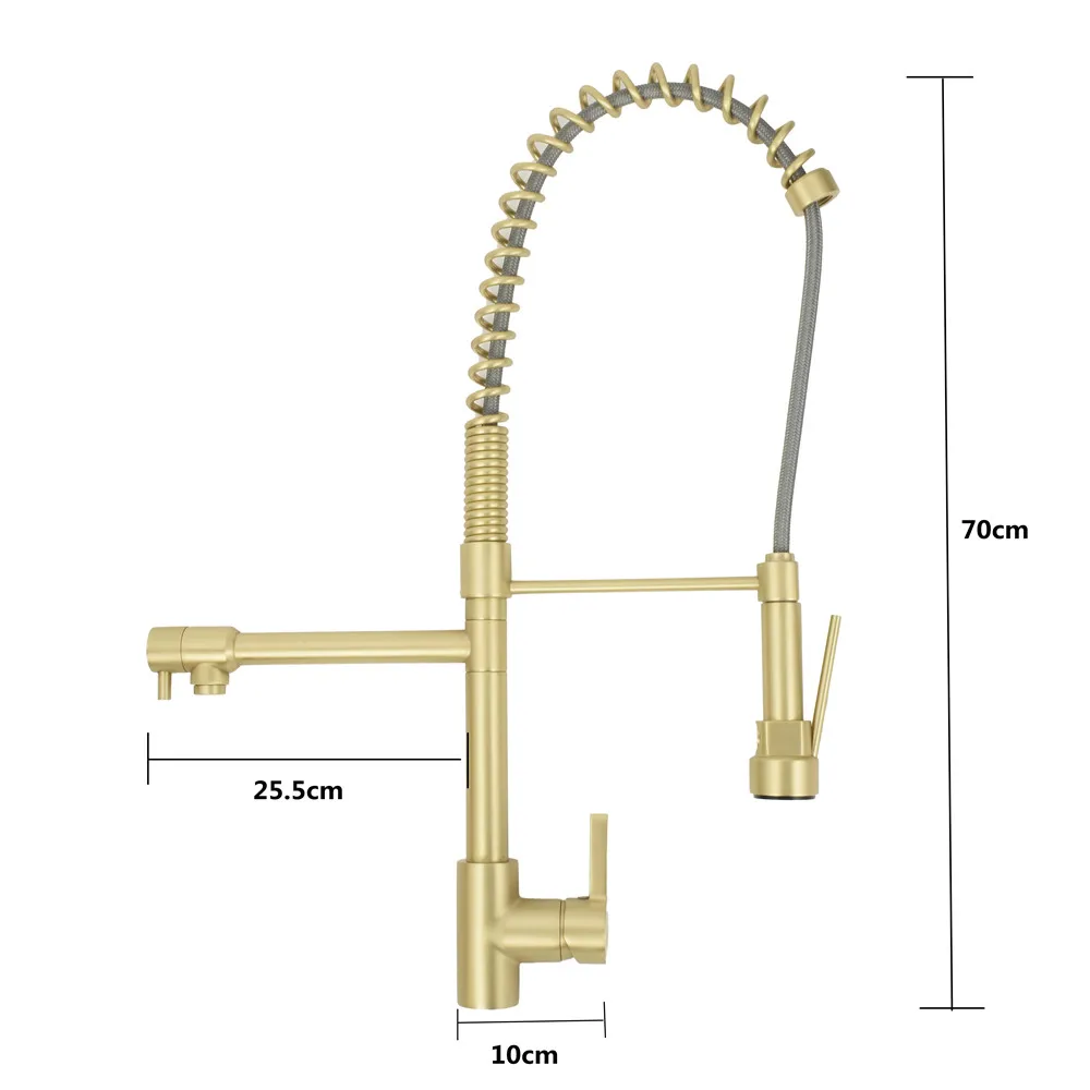 Brushed Gold Commercial Spring Faucet Pull Out Kitchen Mixer Taps