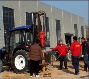 KF-300 tractor mounted water well drilling rig is powered by a tractor diesel engine. The working department of the drilling machine is integrated with the tractor. The tractor is both the drilling machine and the transportation vehicle. At the same time, the disel engine is also the working power of the drilling rig. When going to the work site, the tractor itself can also drag a trailer mounted air compressor, which saves the investment of transportation vehicles.