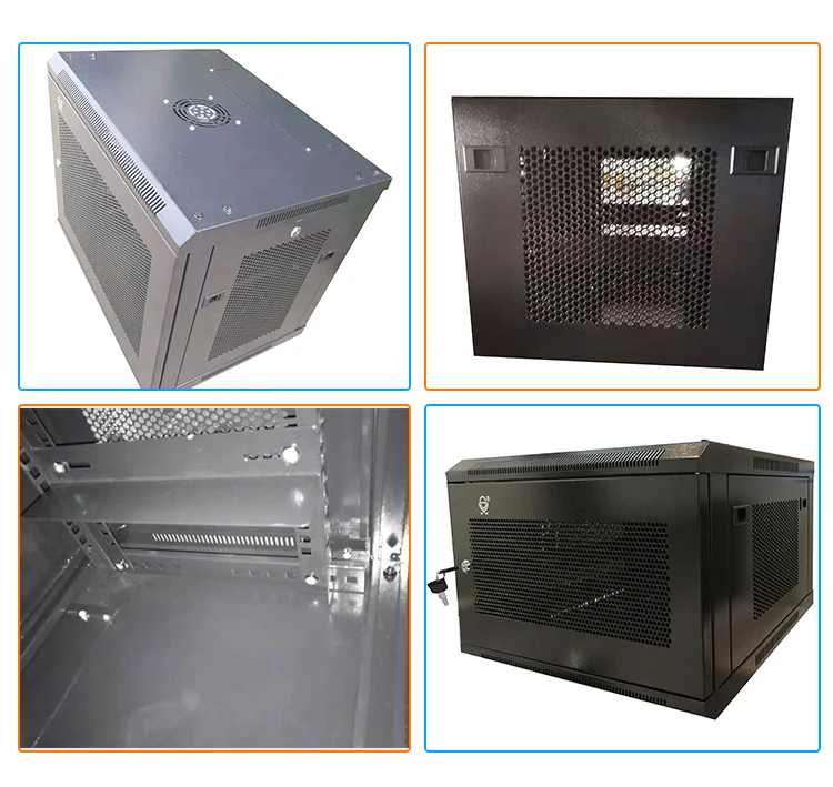 Description | 1. Material: cold rolled steel 2. Wall mounting installation or floor standing 3. With Mesh front door 4. Degrease, aicd picking, rust prevention and parkering, pure water cleaning, static electiricity plastic for the surface 5. Color: Ral9004 Black/Ral7035 Grey | ||||||