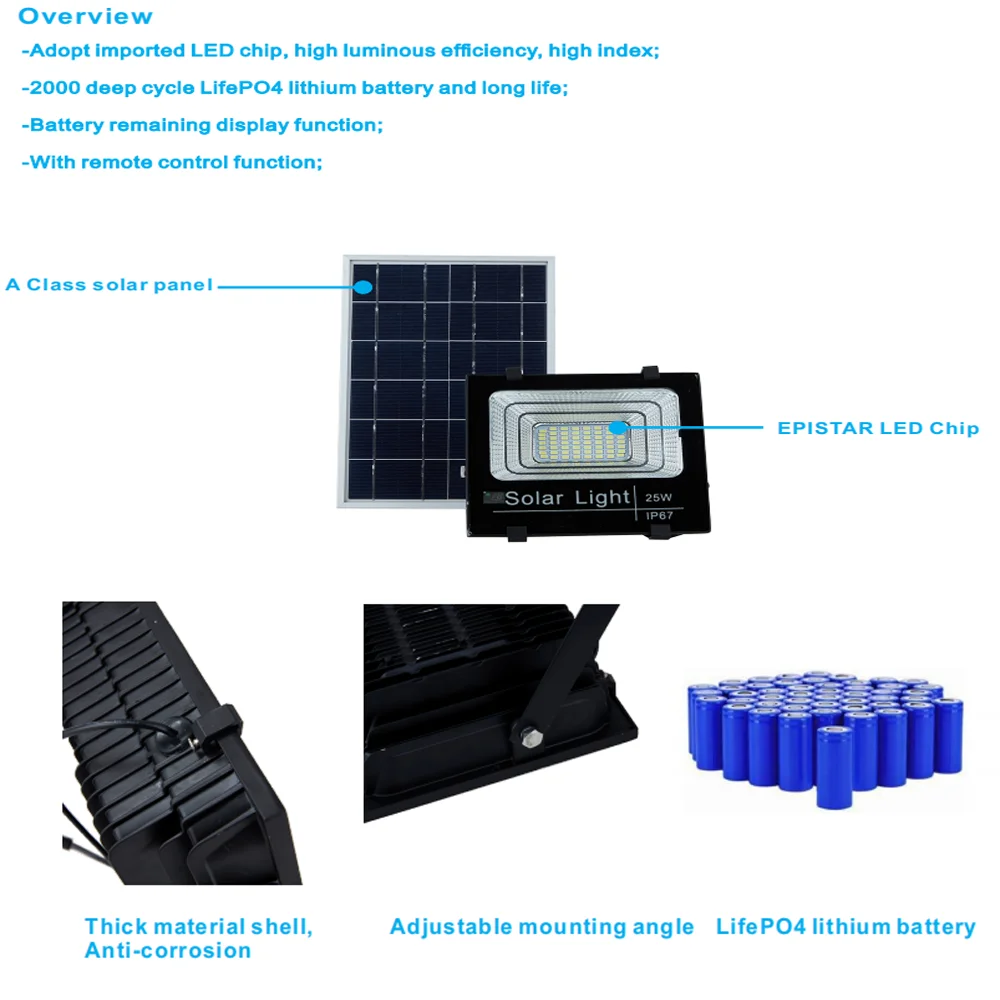 IP65 Outdoor SMD Aluminum 20w 30w 50w 100w LED Solar Flood Light